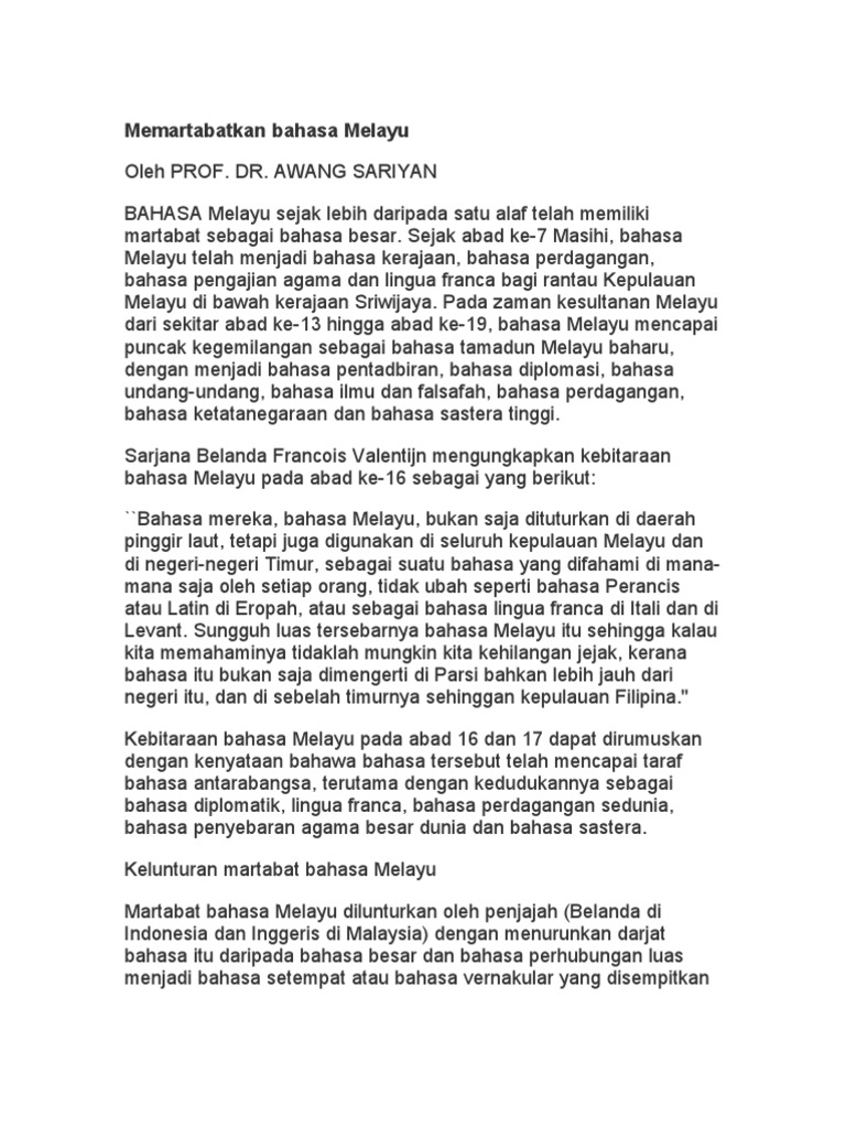 Memartabatkan Bahasa Melayu Pdf