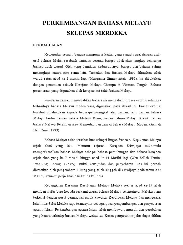 Perkembangan Bahasa Melayu Selepas Merdeka Pdf