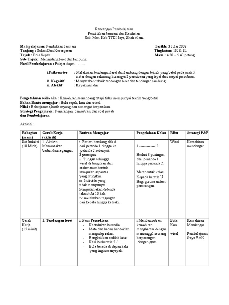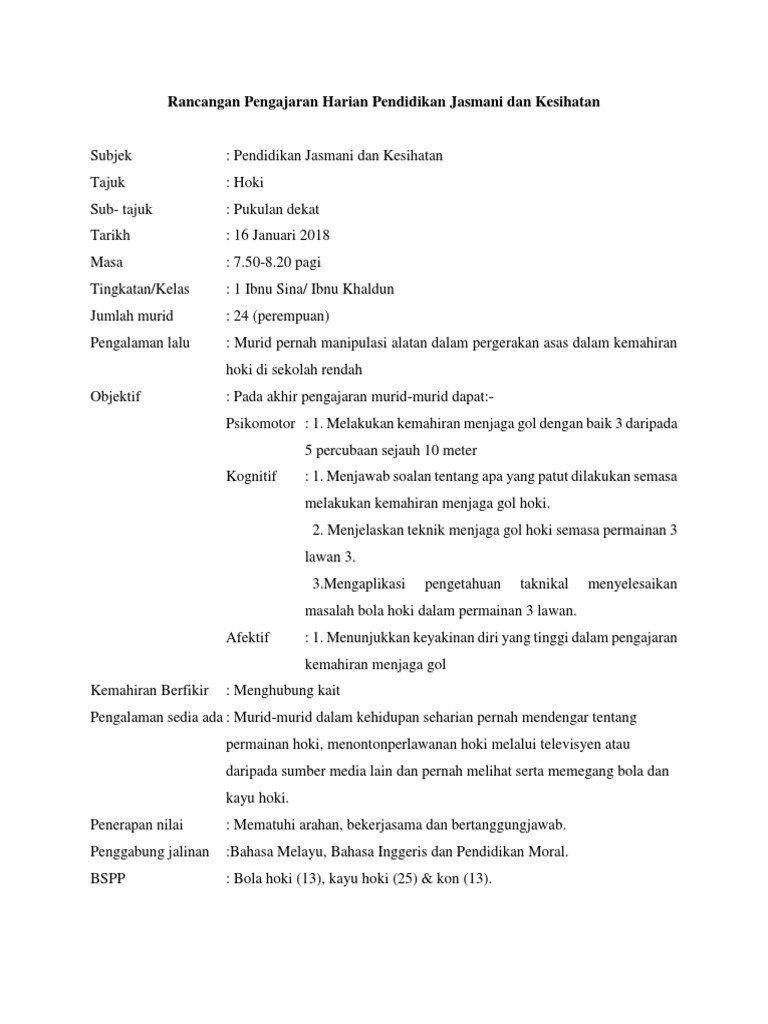 Rancangan Pengajaran Harian Pendidikan Jasmani Dan Kesihatan Pdf